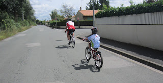 començar m'he trobat els companys Mari-France I Jannick. Pedalem junts un bon